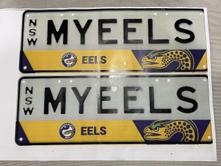 The Parramatta Eels logo and team name "EELS" are along the bottom of the number plate in a rare design. See photo for the design.