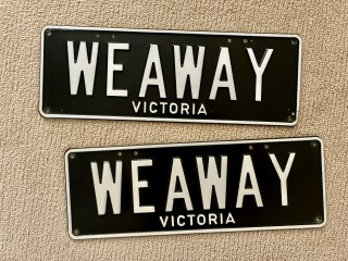 Genuine Victorian custom plates – “WEAWAY”, perfect for travel lovers, retirees, caravan couples, grey nomads, or anyone who loves adventure. Meaning “We Are Away”. Excellent condition, held in retention.