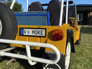 Rev up your ride with this sleek plate: V MOKE. A nod to the iconic Moke, it’s perfect for the adventurous spirit or the classic car lover. Whether you’re cruising along coastal roads or hitting up classic car shows, this plate screams personality and fun. Ideal for that charming beach buggy or the retro enthusiast looking to stand out. Don’t just drive—make a statement. Claim your piece of automotive history today!