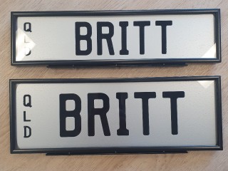 Show off your personality with this custom "BRITT" number plate. Perfect for anyone named Britt, Brittney, or Brittany, it’s a standout addition to your ride. Registered in QLD, this plate adds a touch of flair to your car, making it a conversation starter at meets or a unique signature on the road. It's more than just a plate; it's a reflection of you. Get ready to turn heads!