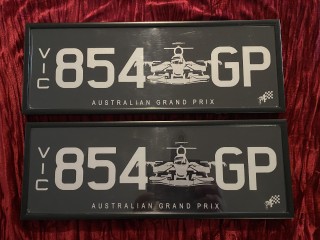Time to sell my Grand Prix plates.I have owned this combo since new approx 23yrs. This special order plate of apparently only 1000 combos are no longer available. The special release of slimline black plates were only on my collector car for approx 2000klms and are therefore in excellent condition, my vehicle is now sold. These plates are being sold in the special edition black metal frame with its black metal mounting brackets that were supplied.I can also include the original coloured GP plates.